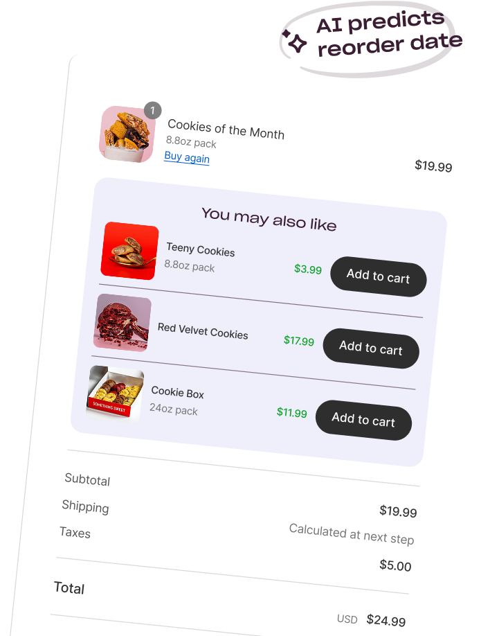 It’s AI prediction meeting shopper intent, turning every upsell into a seamless, one-click “yes.” The result? Bigger carts, higher AOV, and a checkout that practically sells for you.
